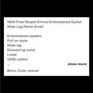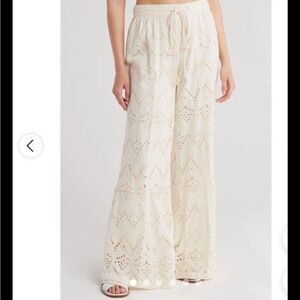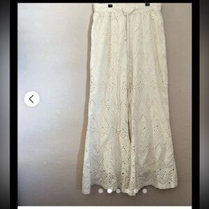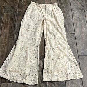 Nwt Free People Cream intricate eyelet design Wide Leg Pants w/drawstring waist.