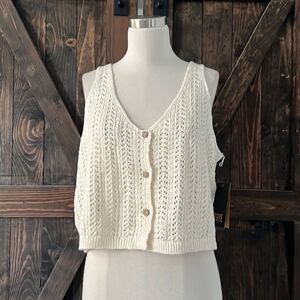 New, The perfect layering piece for warmer weather, this tank has intricate pointelle design and a classic button-up style. Put a unique spin on any outfit with this one-of-a-kind piece that'll keep you comfy, cool, and totally stylish all summer long! Last but not least, its a #button-upblessing for anyone with a flair for fashion!