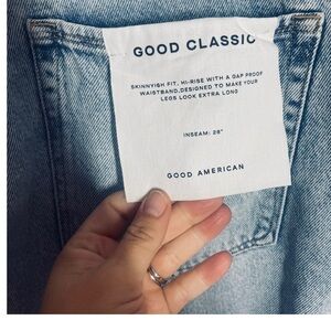 Nwt good American good classic jeans. Please see actual photos for exact color and distressing. Made with a gap-proof contoured waistband and a high waist that's sure to flatter every curve.