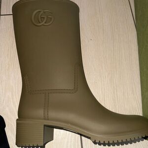 Brand new Gucci women’s rain boots Step out in style with these chic olive boots from Gucci. Perfect for any occasion, these boots offer both comfort and elegance.