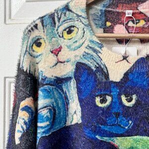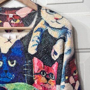 Nwt Gunest Women's Sz L Oversized Sweater Long Sleeve Multi Graphic Cats