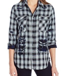 Nwt HUDSON Plaid Kari Distressed Button-Down Top