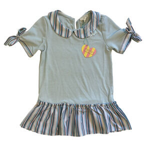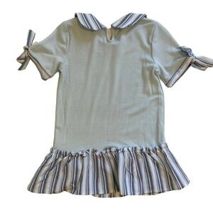 Cotton stretch blend, Striped round collar neck, Short Striped tie cuff sleeves, Striped ruffle Hemline, Polyester blend, MSRP $43.