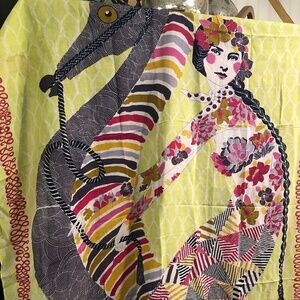 Color: yellow backdrop with multicolor motif of mermaid and seahorse