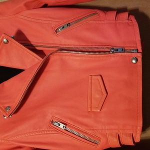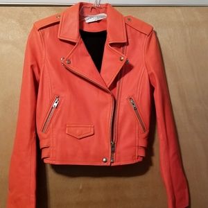 Nwt Iro Ashville Leather Jacket Orange Distressed Wash Zippers Fr 38