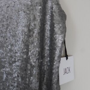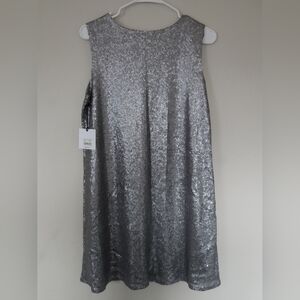 Nwt Jack By Bb Dakota Sparkling Silver Sequin Womens Mini Dress Size Medium. This sparkling silver dress is perfect for special occasions. Its shimmering design adds a touch of elegance to any event.