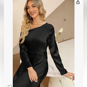 Charming Show: This chic satin dress has slanted shoulders and long sleeves which can make your neck and shoulders slimmer, show your swan neck, highlight your elegance and femininity. The women's silk A-line dress can not only cover your belly, but also modify your body curve, keeping you comfortable all day. If you want a loose fit, please choose a larger size.