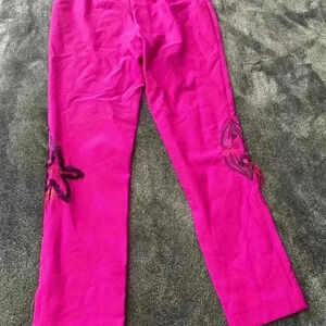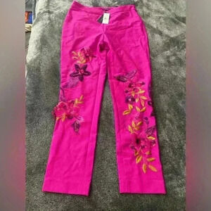 Pants feature a beautiful floral design down both legs. Zip up side. Brand new $795