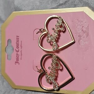 Juicy Couture Juicy in Script Crystal Heart Drop Earrings Gold Tone Dangle Bling.