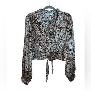 Nwt JustFab Summer Leopard Front Tie Blouse