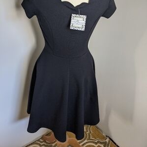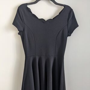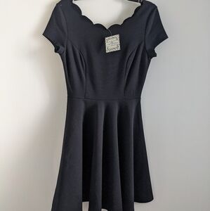 Nwt LBD Black Stretch Ponte Dress with Scallop