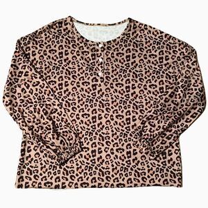 NWT leopard print pajama short set long sleeve top with elastic cuff round button neck and shorts with an elastic drawstring waist