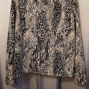 Nwt Leopard Safari Scoop neck T-shirt Top womens L Beige Black Lilac Long sleeve