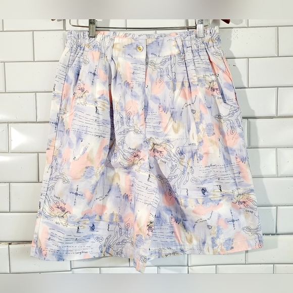 Nwt Line-Up For Sport Ladies High Waist Shorts Bermuda Style Golf Beach Club Graphic Motif Side Elastic Waist Pockets