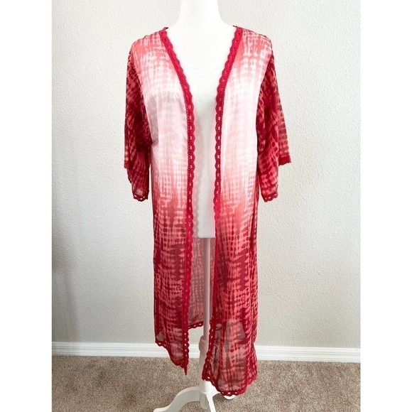 Nwt LuLaroe Chloe Red Gradient Lace Long Open Front Kimono Cardigan S