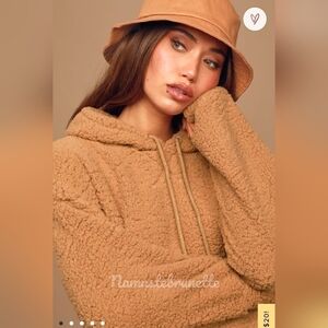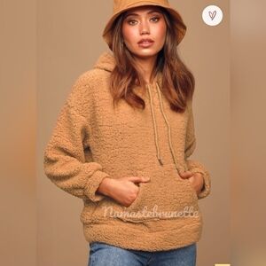 NWT Lulu's Large Tan Fuzzy Pullover Sweatshirt Teddy Hoodie