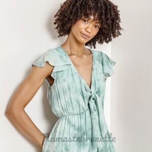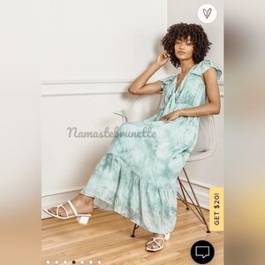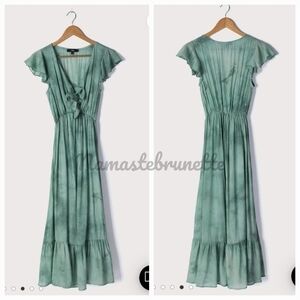 Nwt Lulu's Sage Tie-Dye Tie-Front Tiered Midi Dress