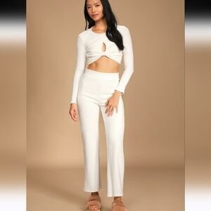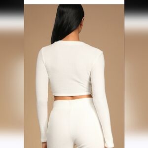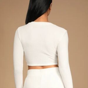Nwt Lulu’s You Gotta Chill White Long Sleeve Knot-Front Crop Top