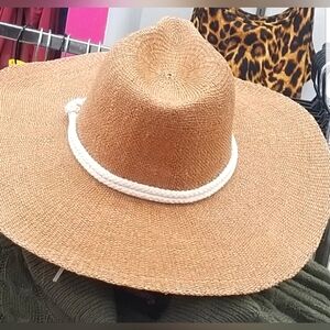 Nwt MARCUS ADLER NEW YORK Boho Wide Brim Panama Hat Rope Band Dark Tan