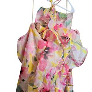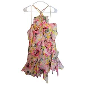 Nwt MISA Miah Floral Chiffon Frilled Halter Mini Dress large