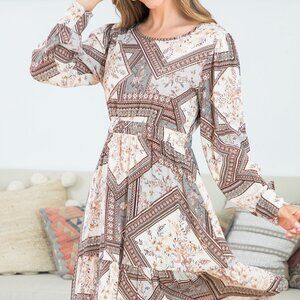 Nwt MISS YOU Tile Floral Long Sleeve Boho Dress in S, M, L