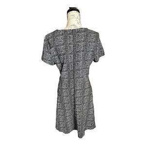 Look smart in this short-sleeve A-line dress designed with a classic print and a ruffled hem.