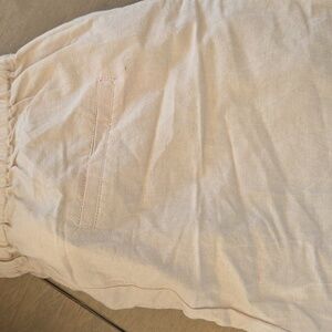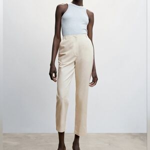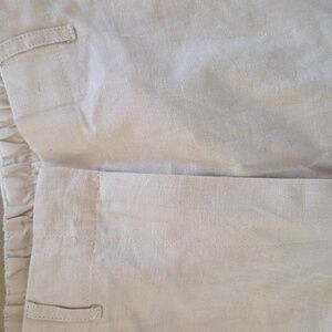 Cotton-blend fabric. Linen mix. Flowy fabric. Straight design. Long design. Elastic back waistband. Concealed button, hook and zip fastening. Two side pockets