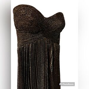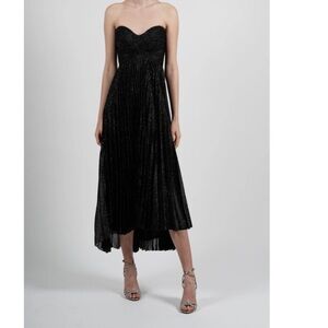 Nwt Maria Lucia Hohan Venus Strapless Metallic Plisse Midi Dress - Size 8