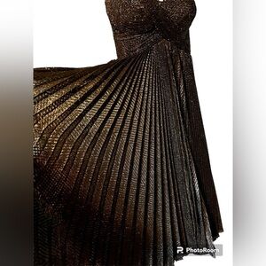 VENUS Midi Dress by Maria Lucia Hoan, in metallized pleated with draped bodice.