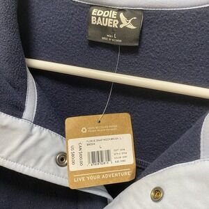 Nwt Men's Eddie Bauer Fleece Snap-Front Pullover Sweatshirt Navy Blue XL
