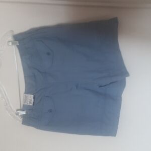 Light blue , waist 36" inseam 5" , front has two pockets on each side, back has two covered buttoned pockets for a total of 6 pockets, belt loops, elastic in waist, polyester cotton blend, new with tags, pet friendly non smoking home