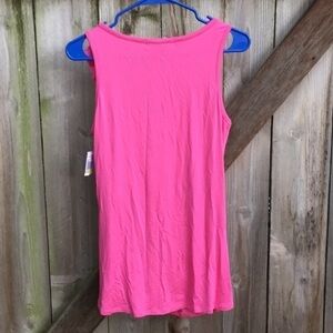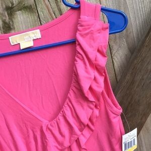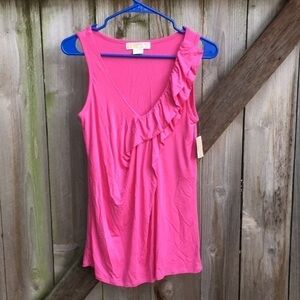 New with tags; Darling bright pink rayon/spandex sleeveless ruffle top