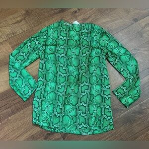 Nwt Michael Kors Womens snakeskin print lightweight blouse XS extra small green