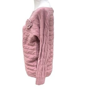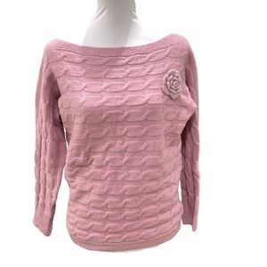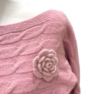 Cable knit Rose pullover sweater Elongated neckline Removable flower pin Bust 40” length 24”