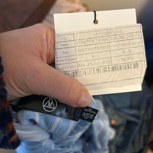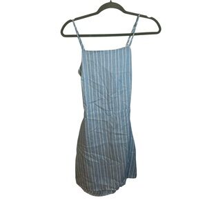 Brand new with tags. Super cute and Stylish baby blue dress featuring white stripes and tie back accents. Perfect for casual outings and a great spring and summer dress. Womens size 2.