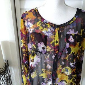 Nwt Newport News semi sheer floral button-down womens long sleeve blouse XXL