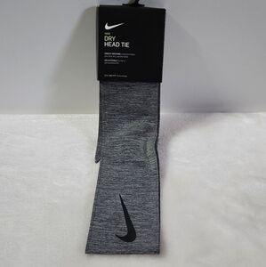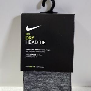 NWT Nike Dry Dri-Fit Heathered Gray Head Tie. Unisex, black branded Nike Swoosh logo, Dri-Fit technology, sweat wicking material & comfortable. Adjustable tie for a personal fit. Polyester elasthamine blend. Brand new with tags!