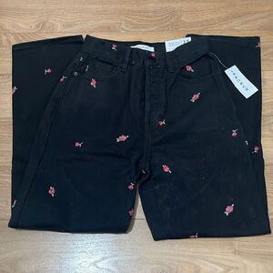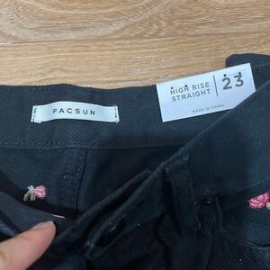 Nwt PacSun Rose Embroidered Black High Waisted Straight Leg Jeans 23