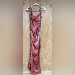 Nwt! Pretty Little Thing Pink Metallic Shimmer Cowel Neck Midi Dress Sz: 10