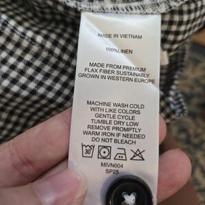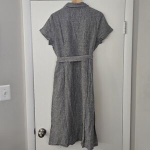 new with tags. 100% linen black and white gingham midi shirt dress with short sleeves and button front. tie waist. size medium by Quince