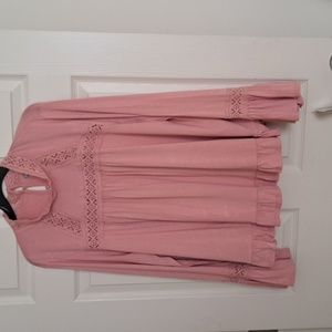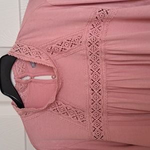 👚👛BABY DOLL STYLE POWDER PINK CUTE SOFT and STRETCHY w/lace detail,long sleeves w/lace flare bottom. Lace neckline w/3 button closure👛👚