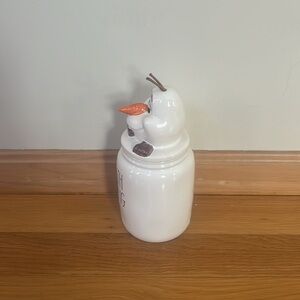 Nwt Rae Dunn worth melting for Olaf canister .
