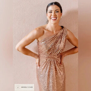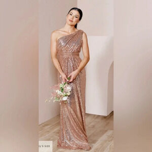Prepare to dazzle the crowd at any event in our one-shoulder Starla dress! Starla features ruching throughout the bodice, a slimming cinched waist, and a flowing skirt that will make everyone feel confident! The empire bust of this style also allows it to be bump-friendly for expecting bridesmaids.