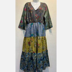 Nwt SACRED THREADS gypsy boho funky hippy rayon twill tier DRESS 1X