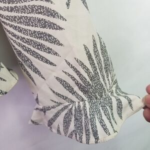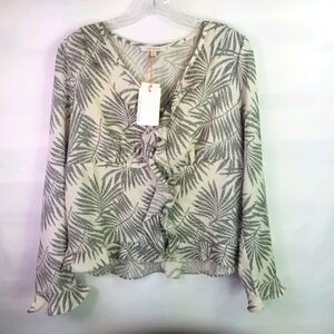 NWT. Skies Are Blue. Cute leaf print button down ruffle shirt. Black and cream. Approximate measurements are pit to pit 19". Length is approximately 22". Sleeves are approximately 24".