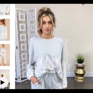 Nwt SMALL ICED BLUE LONG SLEEVE TIE DYE PULLOVER TOP