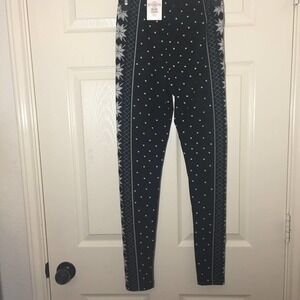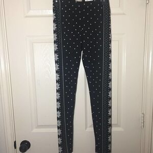 SO brand. Size extra small. Perfectly soft Christmas mid rise leggings xs. Has an elastic waistband. The perfect holiday style. These juniors SO leggings are an absolute essential. The design is black with white snowflakes, arrows, and stripe design. Still have tags attached. Made of polyester and spandex.