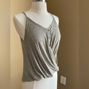 Ribbed Summer top with faux buttons and puffed balloon bottom front.