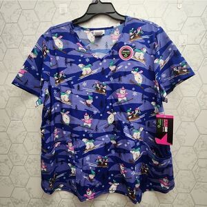 Nwt Scrubstar Women Christmas Winter Chillin’ V-Neck Print Scrub Top