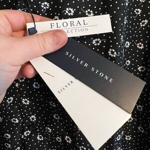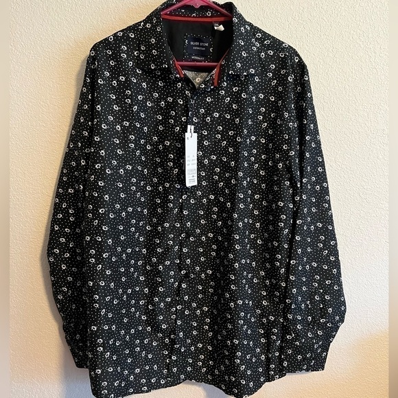 NWT Silver Stone Modern Fit button down shirt with black and white polka dot floral pattern. Size 2xl. 24" armpit to armpit.